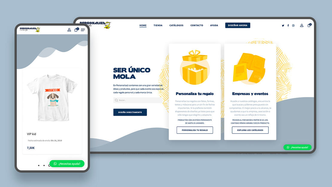 Creación y diseño de tienda online de regalos con personalizador de producto incorporado.